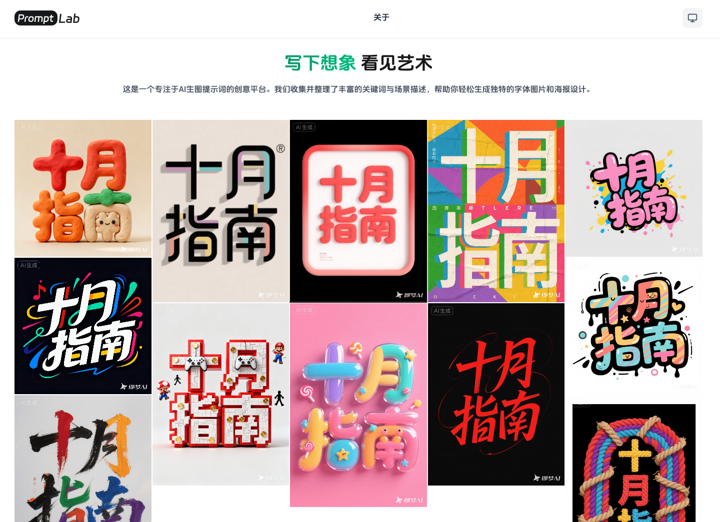 即梦最近生图功能免费,发现生成字体很有意思,而且对中文支持很好,趁着免费生了一批。于是有了这个 AI 字体提示词网站。