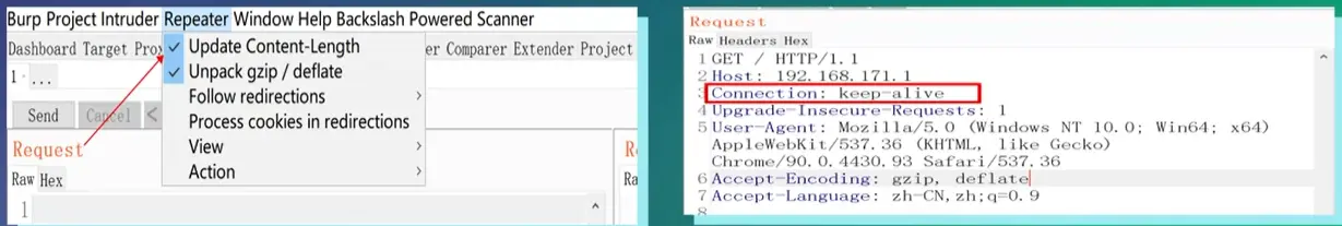 (2)将 http 请求包的连接状态改为持节连接的状态,即 Connection:keep-alive
