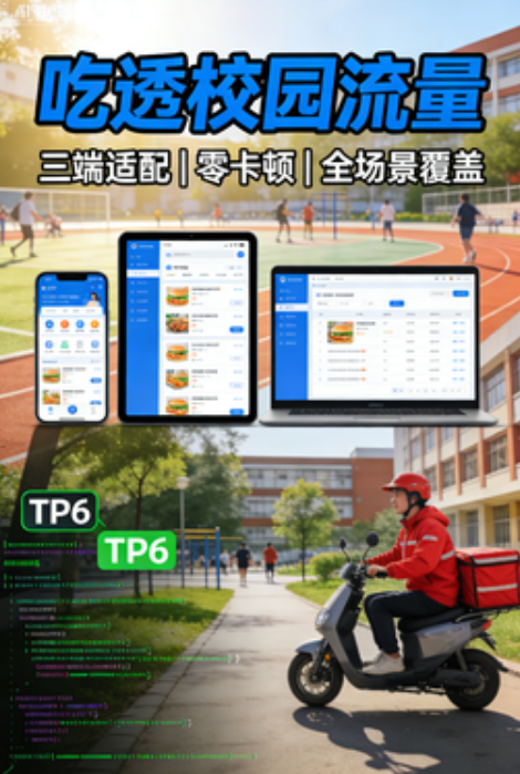 一、 系统核心架构解读(基于 TP6) 技术栈 后端框架: ThinkPHP 6, 一款现代化、高性能的国产 PHP 框架,支持依赖注入、中间件、门面等特性,适合快速开发和高并发场景(理论上支持 “零卡顿”)。 数据库: 通常为 MySQL, 可能结合 Redis 做缓存(用于菜单、用户会话、订单队列等,是 “零卡顿” 的关键)。 通信: 可能集成 WebSocket 用于订单实时推送、骑手位置跟踪。 支付: 集成微信支付、支付宝支付,必备。 “三端适配” 解析 用户端 (Student/User): 通常是微信小程序。原因:免安装、易分享、支付便捷,完美契合校园封闭生态。也可能是 H5 或 APP。 商家端 (Merchant): 可能是微信小程序、H5 或 PC 后台。用于接单、管理商品、处理订单。 骑手端 (Rider/Courier): 通常是独立小程序或 APP。核心功能是抢单/派单、导航、状态更新、联系用户。 管理后台 (Admin): PC 端 Web 系统,用于平台全局管理:用户、商家、骑手、订单、资金、营销活动等。 二、 “全场景覆盖” 功能模块 一个成熟的校园外卖跑腿系统通常包含以下场景: 外卖场景: 餐厅入驻、菜单管理。 在线点餐、购物车、优惠券/满减、拼单。 智能排序(距离、销量、评分)。 跑腿场景: 代取快递(校园最大痛点)、代买物品、代送文件。 发布任务、骑手抢单、定价或协商价。 本地生活服务: 超市/便利店线上化、水果店、零食铺。 预约服务(打印、洗衣等)。 社交与营销场景: “吃透流量” 的关键: 拼单/团购: 鼓励分享,裂变拉新。 校园圈子/论坛: 增加粘性,可发布美食测评、失物招领等。 积分/会员体系: 提升复购率。 分销/推广员系统: 让学生成为推广节点,给予佣金。 精准弹窗/广告位: 针对不同场景(如中午推午餐,晚上推零食)进行营销。 总结 TP6 外卖跑腿源码 从技术选型上适合校园创业团队。它提供了一个快速启动的 “车轮”。 但真正的成功公式是:稳定可靠的技术系统 + 深刻理解的校园痛点 + 执行力超强的线下运营 + 持续创新的营销玩法。