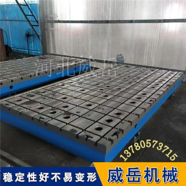 铸铁焊接平台(又称铸铁平板或焊接平台)是机械制造中用于检验、测量、划线及焊接等工序的基准平面设备。其核心价值在于提供一个稳定、高精度的工作基准面,广泛应用于机床校准、零件检测、焊接装配等多个工业领域。 核心定义与基本特性 铸铁焊接平台之所以能成为可靠的工业基准工具,关键在于其独特的材质、精度、规格及表面质量,各项特性相互配合,保障了其使用稳定性与准确性。 材质与处理工艺 平台主体选用高强度铸铁 HT200-300 铸造而成,工作面硬度控制在 HB170-240 之间,兼顾硬度与韧性。为彻和底释放铸件内部应力、确保长期精度稳定,铸件需经过双重时效处理:600°C-700°C 人工退火处理,搭配 2-3 年自然时效处理,有效避免后续使用中出现变形。 精度等级与公差 平台精度严格遵循国家标准计量检定规程划分,常见精度等级包括 00 级、0 级、1 级、2 级、3 级及精刨级,不同等级对应不同的平面度公差标准。以 1000mm×1000mm 规格平台为例,1 级精度平面度公差为 20 微米(μm),2 级为 40μm,3 级为 97μm。其中,00 级、0 级等高精和密平台,主要用于精和密检测、精和准划线等高和端场景;2 级、3 级及精刨级平台,则更适用于常规焊接、零件装配等工艺需求。 规格范围 常规产品规格覆盖 200mm×200mm 至 3000mm×8000mm,可直接满足多数工业生产需求;同时支持根据用户提供的图纸,定制专属规格产品。针对超大型工件的作业需求,可通过拼接工艺,组合形成更大尺寸的工作面,灵活适配各类生产场景。 表面质量与检验 平台工作面严禁存在砂孔、气孔、裂纹等严重影响使用性能的缺陷,确保基准面的完整性。精度检验多采用涂色法(又称研点法),其中 0 级精度平台明确要求,在每 25mm×25mm 的工作面范围内,接触研点数量不低于 25 个,以此保障精度达标。 主要类型与结构特点 根据工作面结构形式及功能扩展性,铸铁焊接平台可分为多种类型,不同类型适配不同作业场景,其主体结构也围绕稳定性进行设计。 传统平面型焊接平台 这是比较基础、比较通用的类型,工作面为光滑平面,无孔无槽,结构简洁,主要用于各类常规焊接作业,适配无需复杂定位的简单工件焊接。 T 型槽焊接平台 在工作面加工有标准 T 型槽,核心优势是可便捷安装螺栓、夹具及各类定位装置,能灵活、牢固地固定不同规格、形状的工件,是目前焊接作业中应用比较广泛的类型之一。 三维柔性焊接平台 作为一种模块化、柔性化的新型工装系统,其工作台主面与侧面均设有标准工作面,且带有标准化孔系。定位组件可在五个方向上灵活安装、调整和扩展,能快速组合适配不同产品的焊接需求,尤其适用于工程机械、汽车制造等产品多样化、需频繁更换工装的领域。 结构设计 平台主体结构主要分为筋板式和箱体式两种,底部均设计有围板及加强筋(筋板),通过优化结构布局,大幅提升平台整体的结构强度、刚性及稳定性,避免因承载工件或长期使用产生变形。 应用领域与选型维护 铸铁焊接平台的应用场景覆盖多个工业领域,合理选型、规范安装使用及科学维护,既能延长其使用寿命,也能保障其精度长期稳定。 广泛应用领域