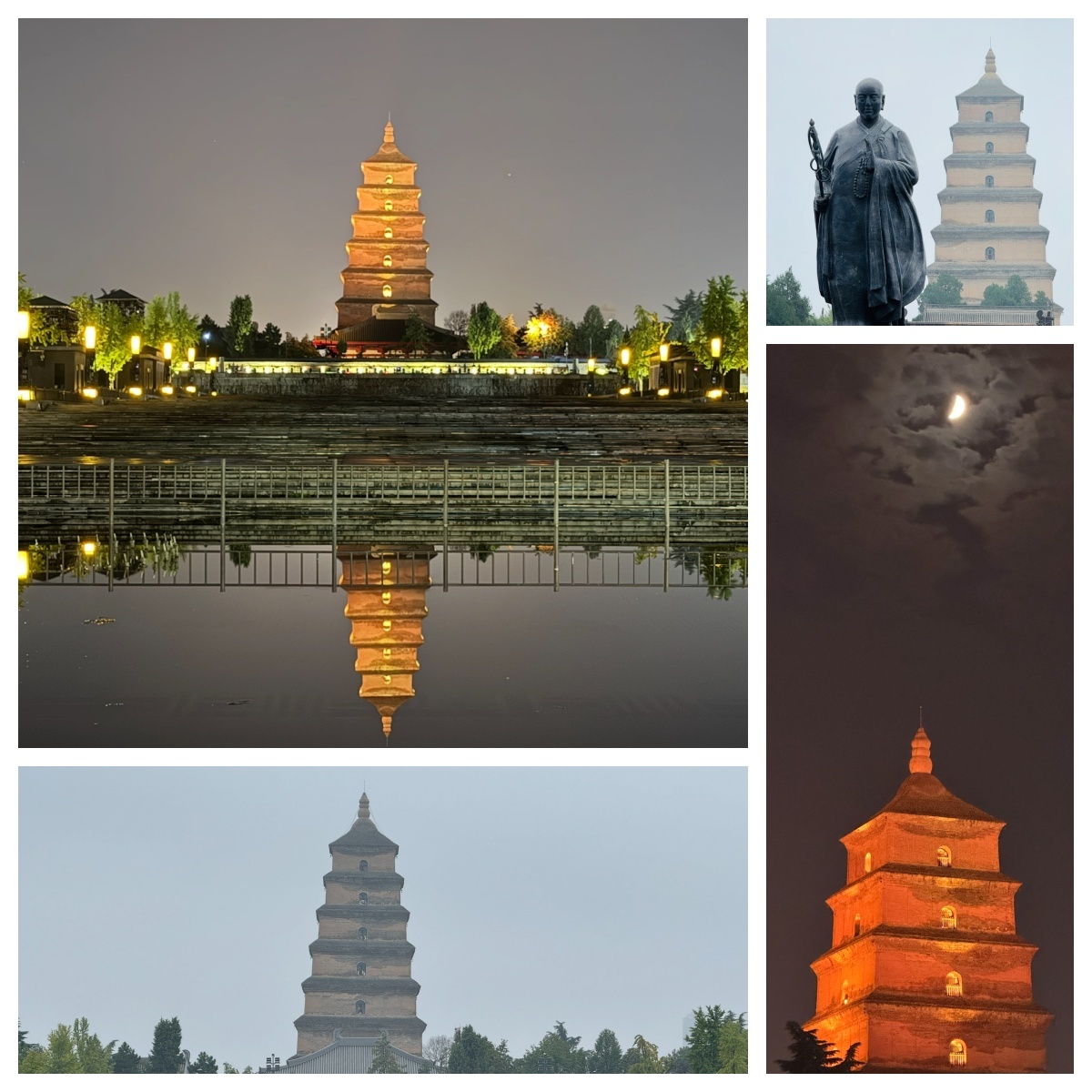 看完后就坐地铁去大雁塔,先是吃了顿水盆羊肉,然后去看喷泉。这个号称是亚洲最大的矩阵式音乐喷泉,说实话一般般,音乐也一般,喷泉的水流也缺少变化。我一直关注的反而是「凳子哥」,这个老哥是在大雁塔给游客租凳子的,就是最最普通的那种塑料方凳,不是用来坐,而是让游客可以站上去欣赏或者拍照。其实这样的租凳子的不止他一个,但是他最特别,一是他的位置确实是观看喷泉的最中间的位置,二是他没有左眼,黑肤短发,一脸凶相,从头至尾嘴里在不停地在推销他的凳子,也真是个卖力气的活计。而且他还不是单兵作战,喷泉表演后期他的同伙过来拍了拍他的肩膀,他就立刻把剩下没租出去的三个凳子收起来赶忙走了,原来是广场的保安过来了。过了一会他和同伙又回来了,没带凳子,清点已经租出去的凳子,一共租出去 14 个,也就是 280 元,相信他在国庆期间会赚得多得多。