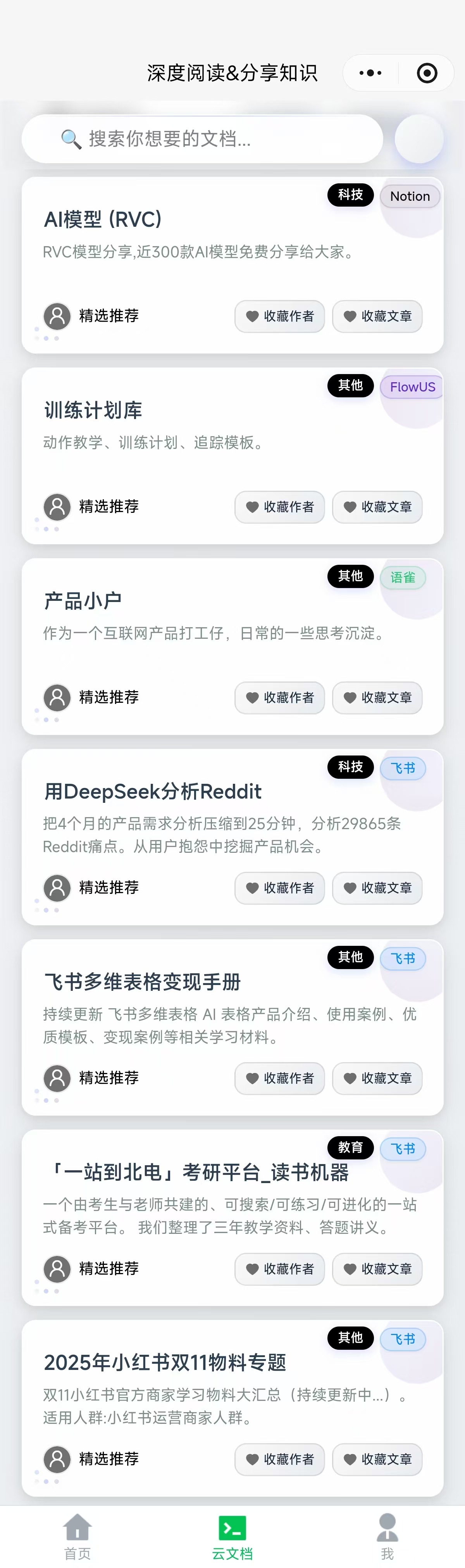 ✨【内容平台丰富】涵盖飞书云文档、Notion、语雀、FlowUS、金山云文档、腾讯云文档等众多平台的公开云文档。