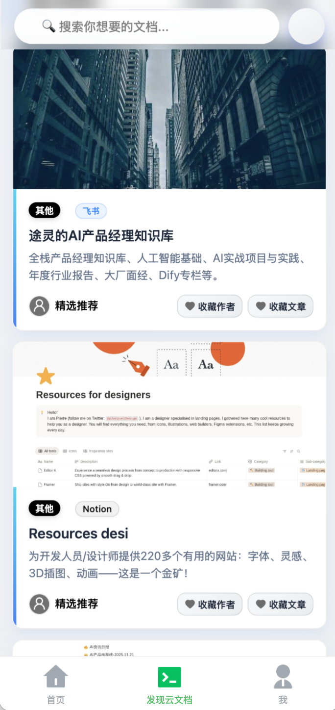 ✨【内容平台丰富】涵盖飞书云文档、Notion、语雀、FlowUS、金山云文档、腾讯云文档等众多平台的公开云文档。