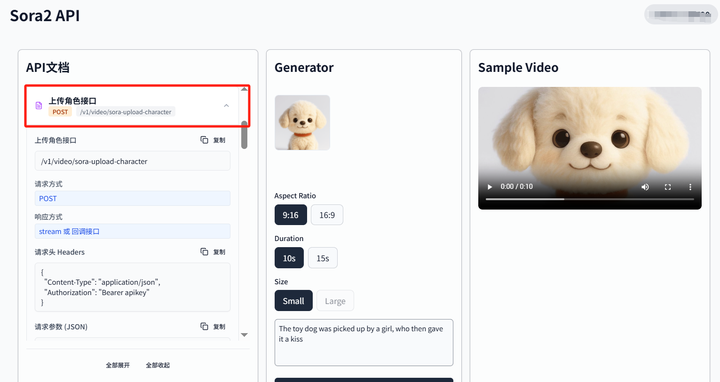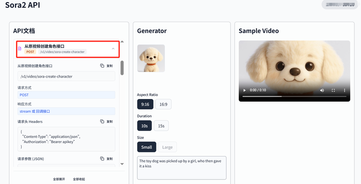 介绍:此接口直接对接 Sora2 模型的角色理解与复用能力。它允许开发者从任何由 Sora2 生成的视频中,直接截取并 “抽离” 出表现优异的角色片段,一键创建为一个全新的、独立的可复用角色。这彻底打通了 “AI 原生创作 - 资产挖掘 - 持续复用” 的闭环,让每一次成功的视频生成都能沉淀为未来创作的素材。