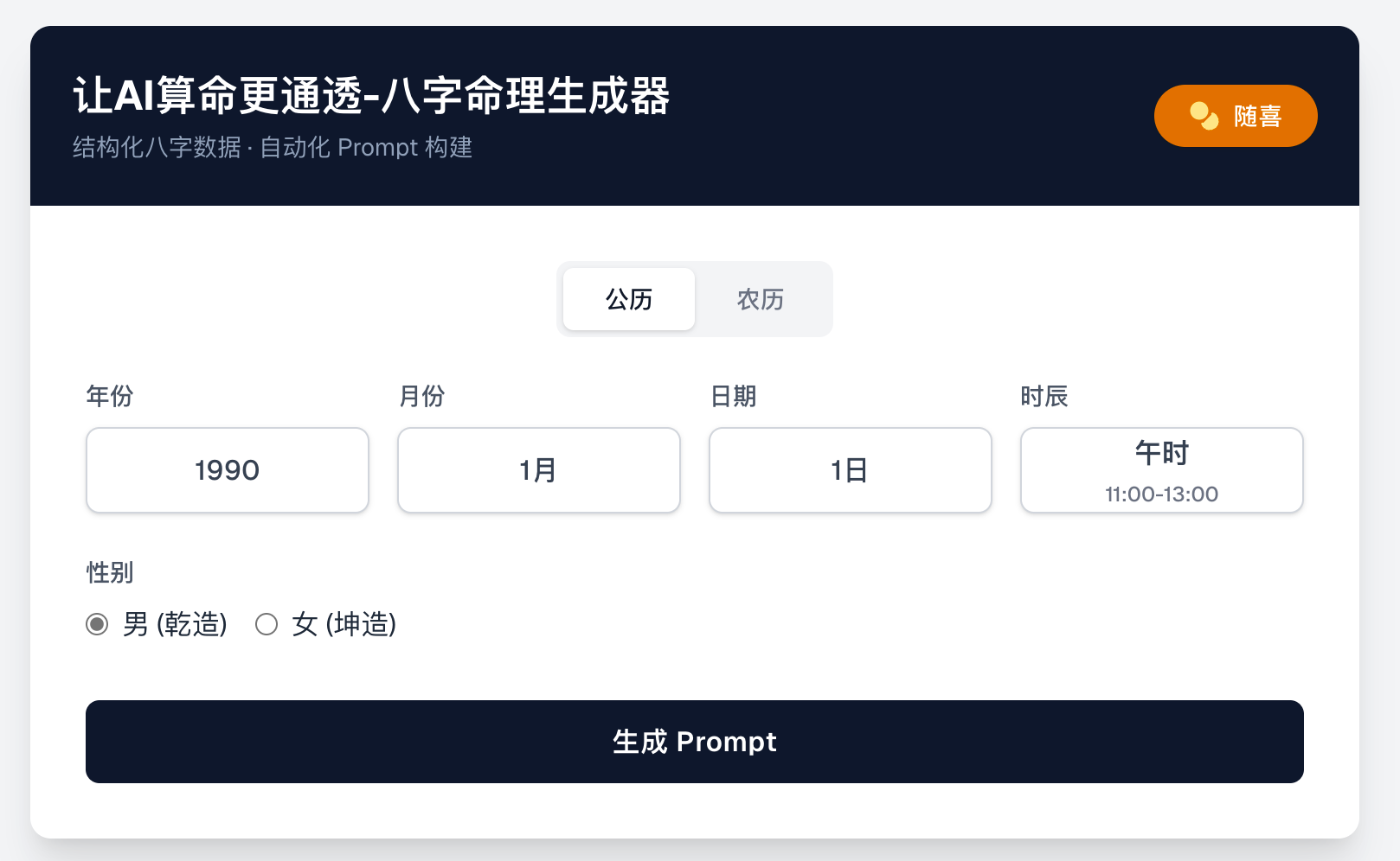 在玩 AI 的过程中,我发现 ta 处理 “八字排盘” 这种严谨的干支历法时,经常出现严重的幻觉。它算不准节气,也搞不清早晚子时的边界。