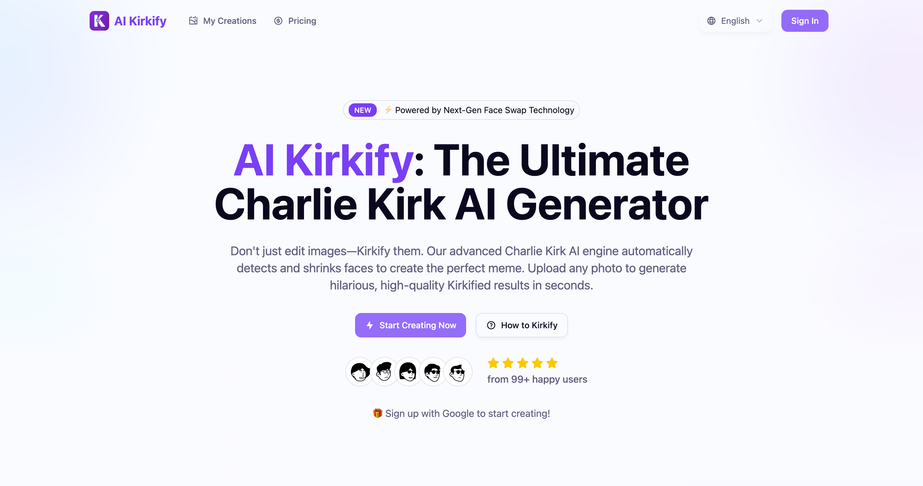 这是一款专门为生成 Charlie Kirk AI风格图片打造的 AI 网站。不仅是简单的滤镜,它通过算法自动识别并重构面部特征,让你能在几秒钟内将任意人像照片完美 "Kirkify"。