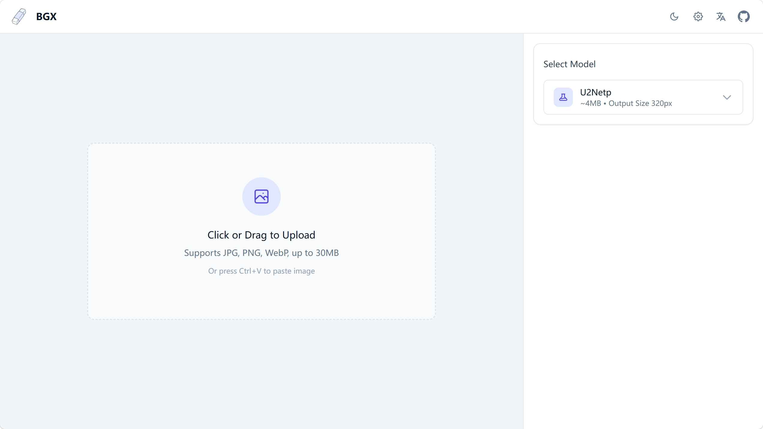 • 便捷上传:支持拖拽、文件选择或 Ctrl+V 粘贴上传图像
