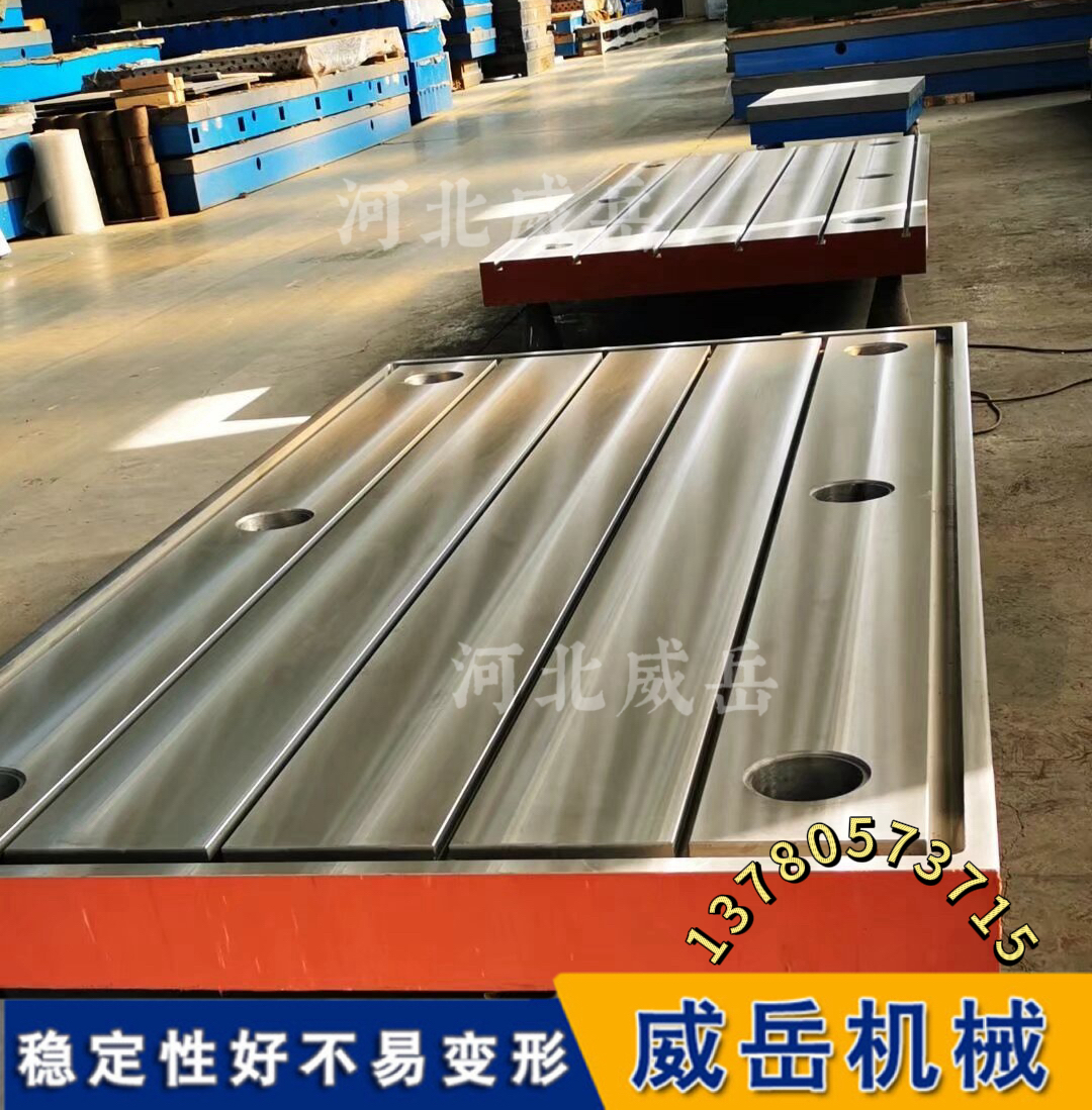 调试验收 稳定性测试:平台空载静置 24 小时后,再次复核水平度,变化应相当小(例如≤0.005mm/m)。有条件的话,可以放置平台额定承载 80% 的试重块,静置几小时后观察并复测,确认无变形和下沉。 功能验证: 通用平台:可用标准量块和百分表配合,检查工作面的贴合度。 T 型槽平台:需检查 T 型槽是否顺畅,并用 T 型螺栓和压板试装工件,确认固定牢固,槽位无变形。 比较终清理与防护:验收合格后,清理平台表面的所有安装碎屑和油污,然后均匀涂抹一层防锈油,若长期不用,需盖上防尘罩。 需要留意的几个细节 禁止直接放置:千万不要把平台直接放在松软或不平的地面上,这几乎必然导致平台变形。 循序渐进调整:调整垫铁时要微调,避免一次拧动幅度过大,导致精度失控。 注意温度影响:如果安装环境与使用环境温差较大,建议将平台在安装现场静置一段时间,待其温度与室温一致后再进行精调,以减少热胀冷缩的影响。 定期复检:平台投入使用后,建议每 3-6 个月用水平仪进行一次精度复检,每年可考虑进行一次专业的激光校准,以应对可能的地基沉降。