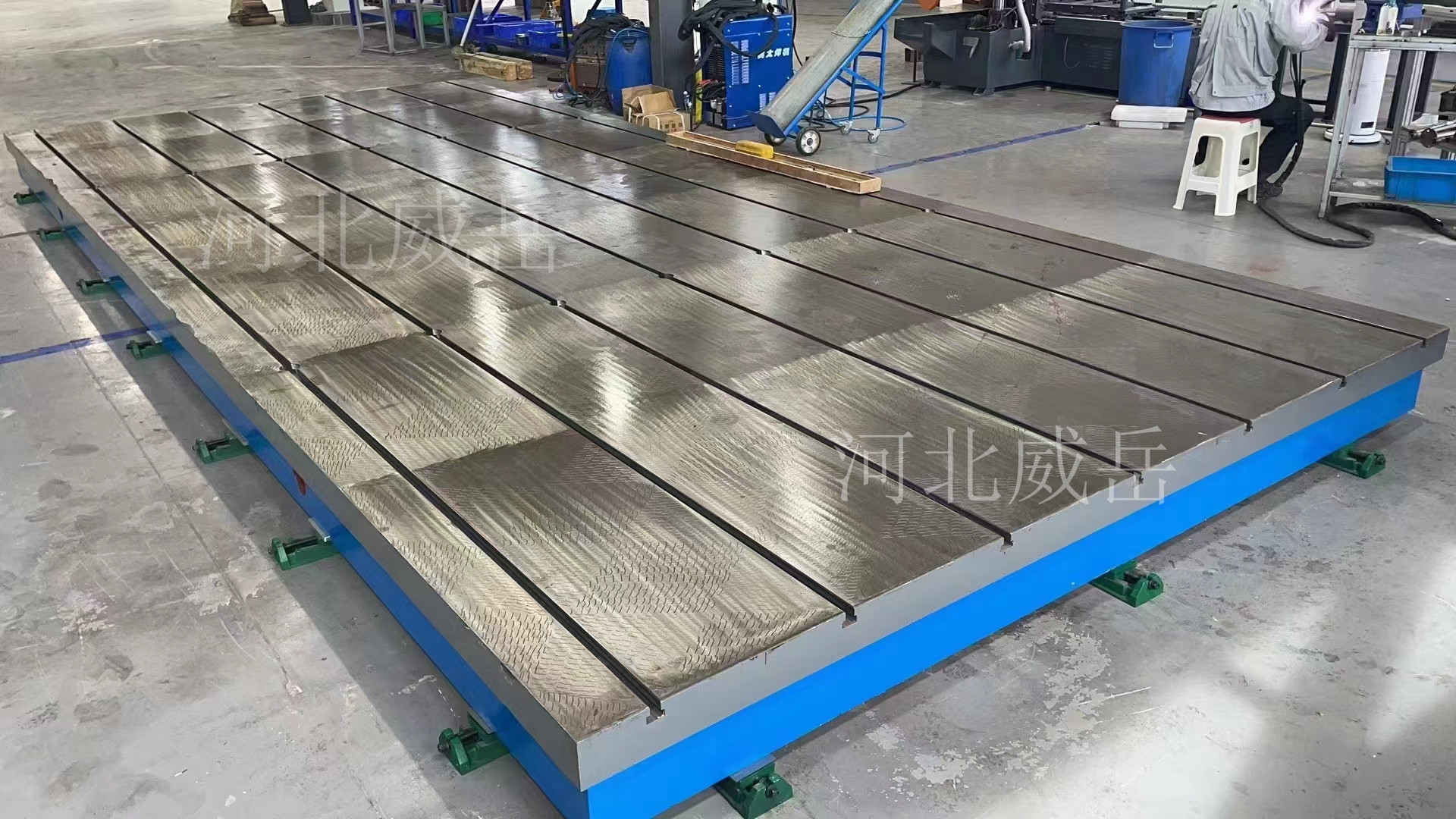 3. 使用规范 轻拿轻放:铸铁材质较脆,抗冲击能力差。在放置被测工件、量具或测试设备时,应轻拿轻放,严禁撞击、敲打工作面,更不允许在平台上对工件进行矫正或锤击。 均匀承载:在放置大型或重型工件时,应尽量平稳放置,避免局部受力过大导致平台变形。如果平台有多个支撑点(如三点支撑),应确保所有支撑点均匀受力。 温度平衡:如果工件与平台温差较大(例如刚从寒冷室外运入的工件),应先放置一段时间,待温度接近室温后再进行测量,否则热胀冷缩会产生显著的测量误差。 二、 精度维护与校准 为了确保平台长期处于可用状态,需要建立周期性的检定制度。 定期检定:根据使用频率和精度要求,通常建议每 6 个月至 1 年进行一次周期检定。检定方法通常采用电子水平仪或自准直仪,按照国家标准(如 GB/T 22095)进行平面度检测。 研磨修复:如果检定发现精度超差,且磨损量不大,可以通过人工刮研进行修复。这是恢复铸铁平台精度比较传统也是比较有效的方法,通过刮去高点,使平台重新达到要求的平面度。如果磨损相当为严重,则可能需要上磨床进行加工,但这会大幅缩短平台的总寿命。 三、 使用寿命预期 一块合格的铸铁试验平台,在规范的维护和使用下,具有相当长的使用寿命。 理论寿命:铸铁平台的设计寿命通常在 30 年至 50 年以上,如果维护得当,甚至可以跨代使用数十年。 精度寿命:平台精度的衰退主要来自两个方面: 自然时效:新平台在铸造后通常会进行长达 6 个月至 2 年的自然时效或振动时效处理,以消除内应力。优和质平台在使用过程中,内应力释放相当慢,尺寸稳定性相当高。 磨损:工作面会随着使用逐渐磨损。在正常、均匀的使用条件下,平台每年的磨损量通常在微米级(0.001mm-0.005mm),这种缓慢的磨损可以通过周期性的刮研修复来抵消,从而让平台长期保持在高精度状态。 报废标准:通常只有当平台发生严重的物理损伤(如断裂、大面积崩裂)、或因长期局部磨损导致厚度过薄无法再次刮研时,才会被判定为报废。 总的来说,只要做好了日常的防锈和防磕碰,并坚持周期性的校准与维护,一块铸铁试验平台可以成为几代技术人员的得力工具。