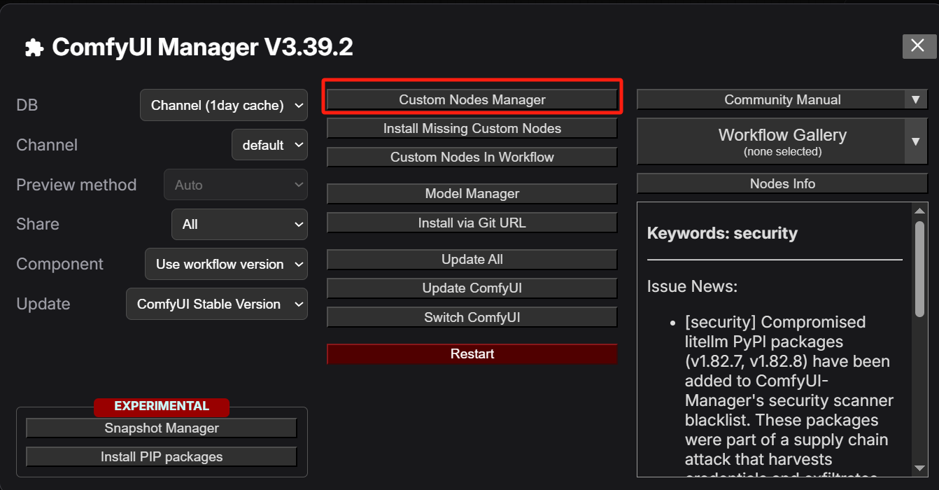 • 点击 Custom Nodes Manager